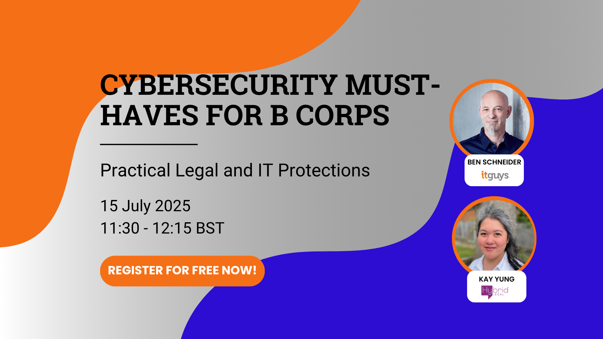 This webinar is for leaders, operations managers, and decision-makers in B Corps, charities, social enterprises, and all purpose-driven businesses who want to understand the real risks — and take confident steps to stay protected.